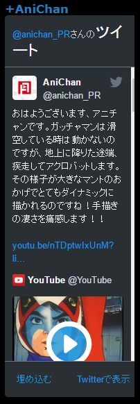 ▲当サイト”+BERSE+RK+fun”では+TWEETの下部に[AniChan twitter]を追加させていただきました!!Thank you very much !!
