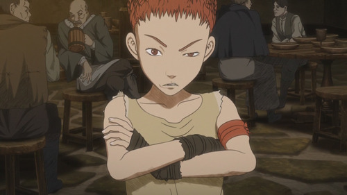 最強の剣士になると息巻いて生まれた地を飛び出すも程なく先立つモノが底をつき、生きるためにスリなどをして糊口をしのいでいた少年。ガッツとの出会いがキッカケで、同行する者その3と同時にギャグメーカー2号。